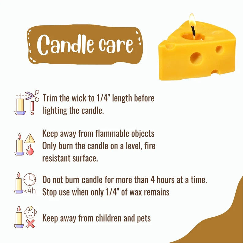 Introducing the perfect candle for anyone who loves the unique creative candle - UPFLICK Cheese Food Shaped Candle! This cute candle is made from 100% natural soy wax with cotton wick. Not only does it emit a delightful fruit scent, but it also makes for a great home decor piece with its bright and cheerful yellow color.